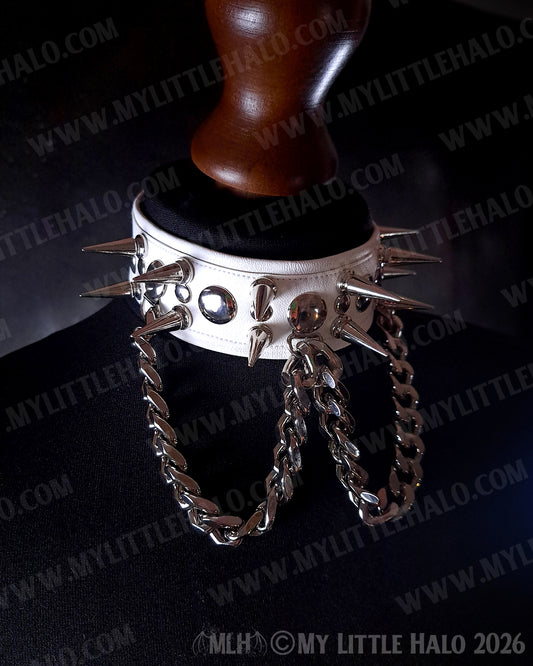 White Spikes & Chains Faux Leather Choker #1