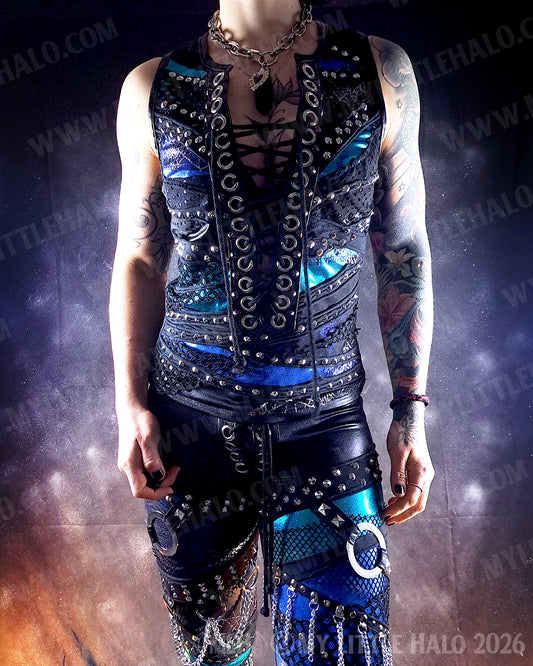 Black, Turquoise & Blue Spider Web Vest #7