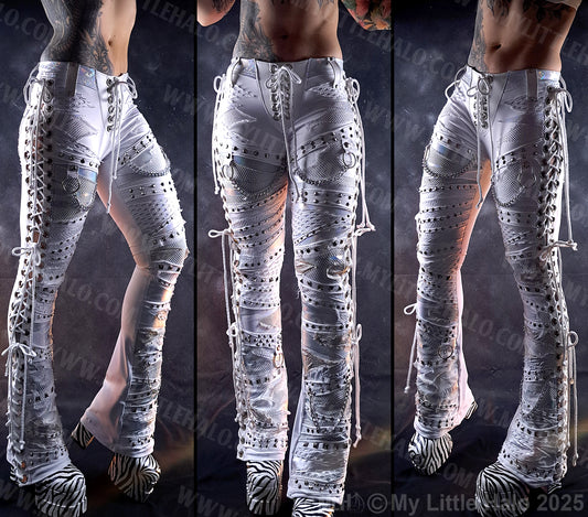 White Holographic Rivet & Chain Glam Rock Skinny Pants #7
