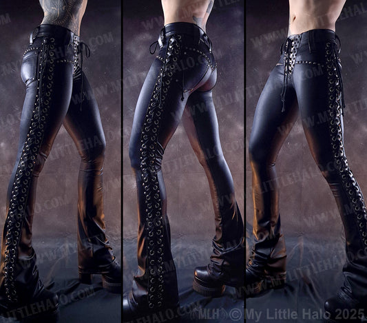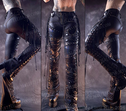 #10 Black, Gunmetal & Copper Lace up Hologram Gothic Flares
