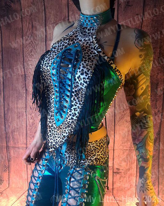 #1 Teal, Leopard & Zebra Print Fringe Pants