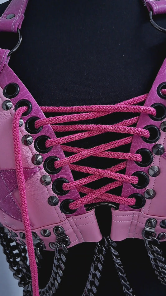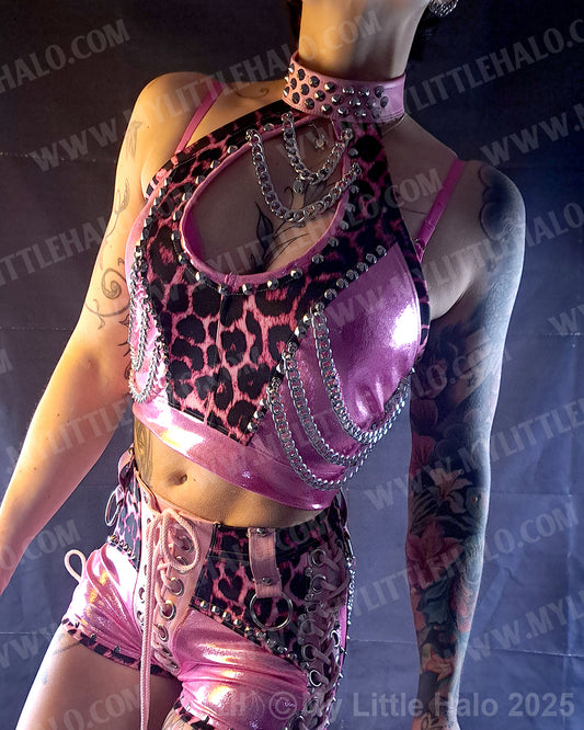 #1 Pink Candy & Leopard Chains Peephole Crop Top (04-25-01-1-01)