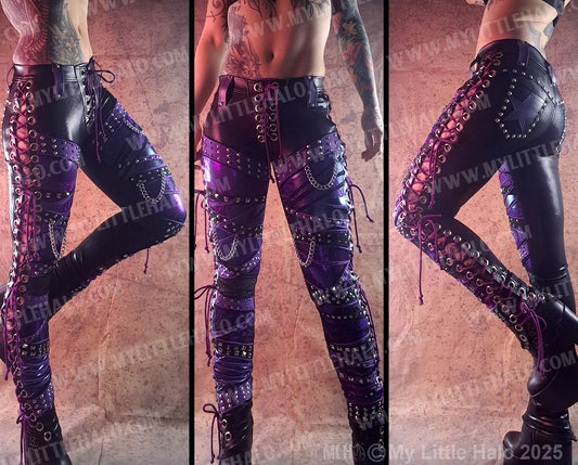 #10 Black & Purple Front Lace up Skinny Pants (24-12-1-010)