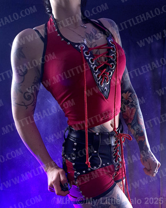 Sold out#1 Red Spiked Leather/Spandex Halter