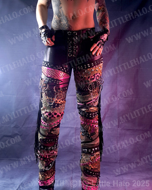 Sold out#1 Pink Leopard Collage Fringe Pants