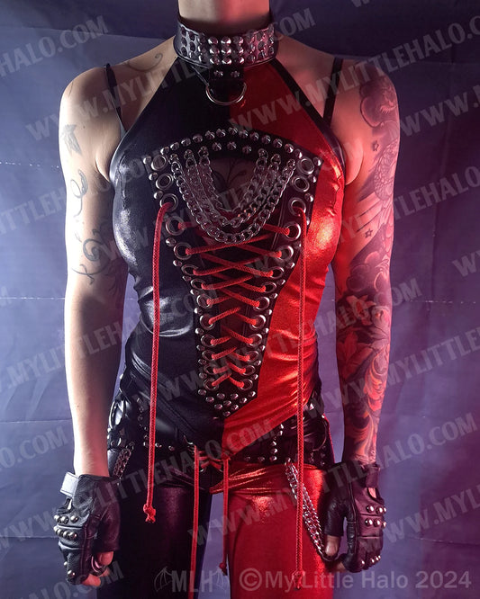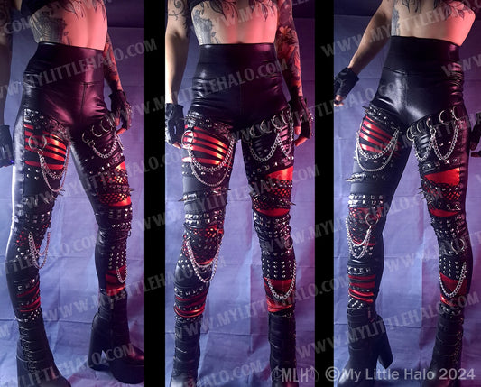 #16 Black & Pink High Waisted Rivet & Chain Pants