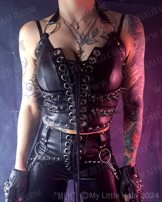 #18 Dark Pink & Silver Spike & Gemstone Bustier