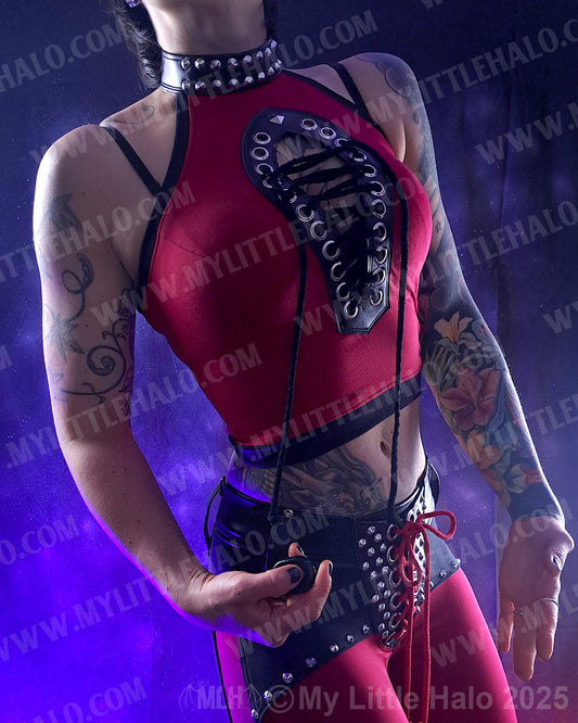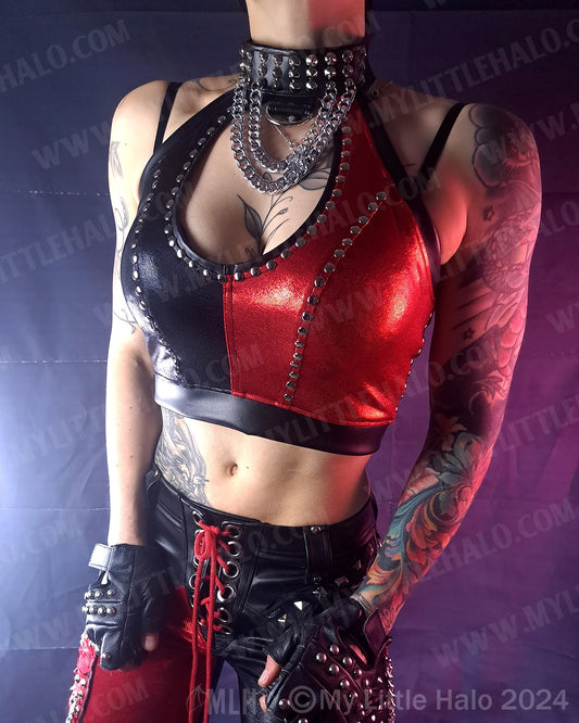 #24 Red & Black Chain Fringe Spiked Halter (02-24-11-1-24)