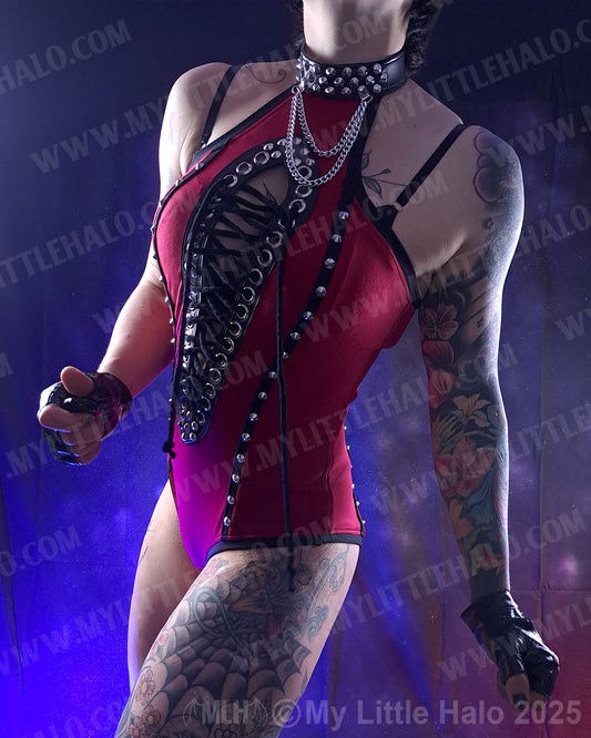#9 Deep Red Spiked, O Ring Bodysuit
