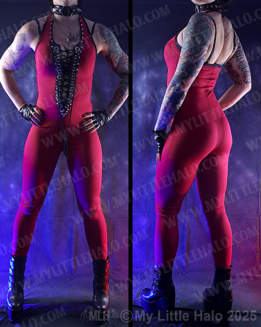 #8 Deep Red V Cut Lace up Catsuit