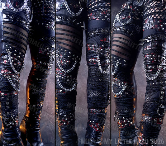 This collection showcases one-of-a-kind, handmade pieces rooted in classic and contemporary gothic fashion. Every item is designed, cut and crafted individually, with precise attention to silhouette, structure and movement. Expect dark palettes, textural contrasts, lace-up features, chains and hardware, with considered use of faux leather and metallic finishes.