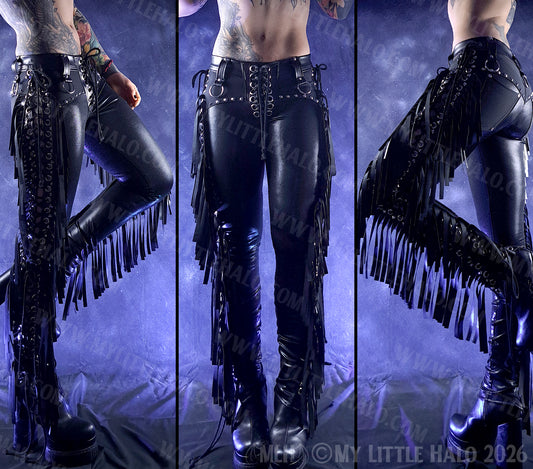 Black Fringed Side Lace up Gothic Skinny Pants #14
