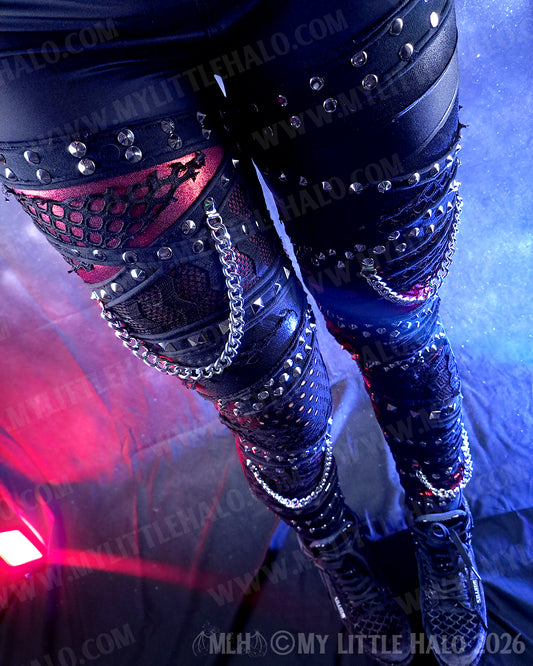 Step into the world of alternative glam rock and heavy metal leggings with our handcrafted designs. Created for women who embrace individuality, rebellion, and statement fashion, these leggings fuse gothic edge with glam rock attitude. From spiked detailing to daring fishnet panels, every pair is designed to stand out and empower your look.