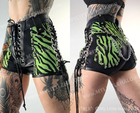 High Waist Green Zebra Chain Shorts (Large Only) (06-24-01-00-05)