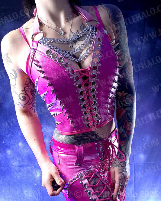 #18 Dark Pink & Silver Spike & Gemstone Bustier