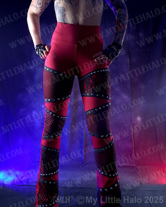 #10 Deep Red & Black Fishnet & Lace Bootcut Pants