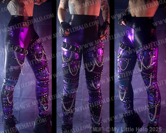 One of a kind rock pants, handcrafted by My Little Halo, including lace up pants, skinny and straight leg, bootcut and flares