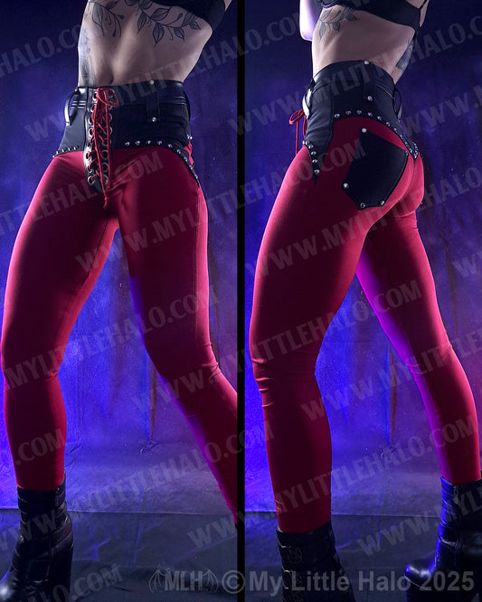 #1 Red, Black & Zebra Print Double Lace up Pants
