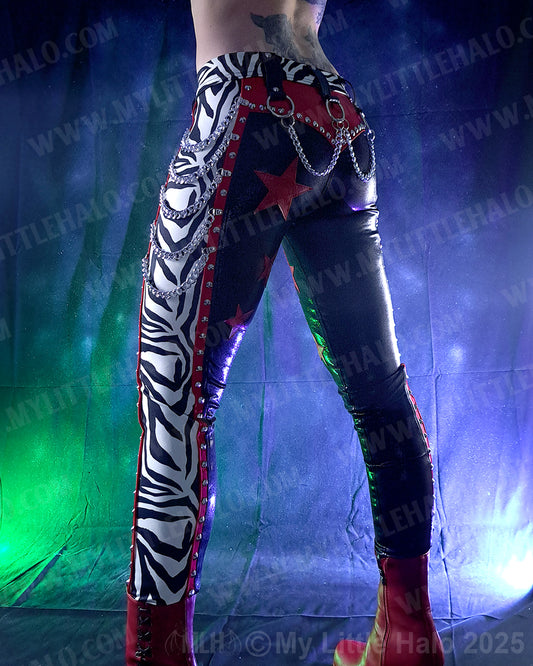 Men’s Zebra Print, Star & Chains Skinny Pants