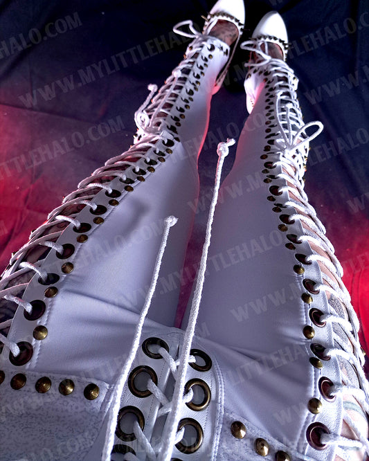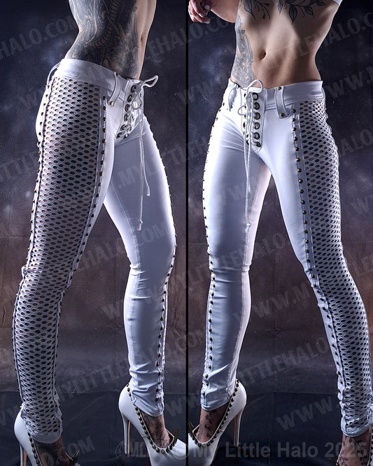 Sold out#4 White Fishnet Lace up Spiked Vest