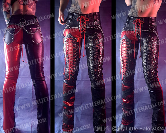 #20 Red & Black Laced Thigh Straight Leg Pants
