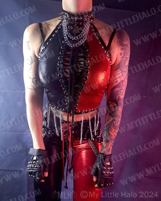 #24 Red & Black Chain Fringe Spiked Halter (02-24-11-1-24)