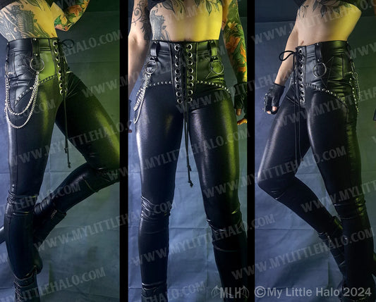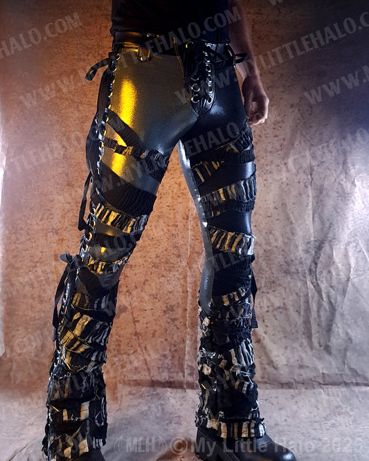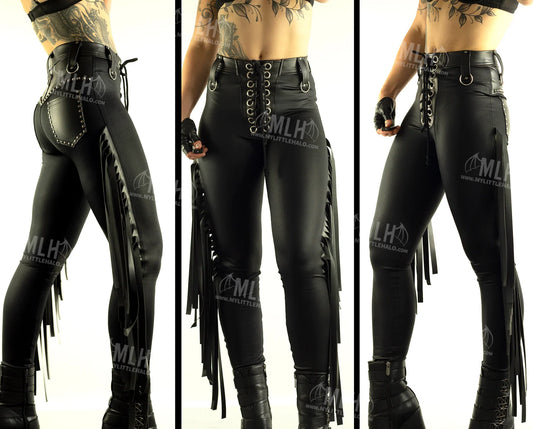 High Waisted Matte Black Fringed Pants (XL Only) (03-24-01-00-06)