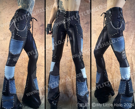 #4 Men's Black/Grey/Distressed Denim Lace Up Pants (03-23-03-1-04)