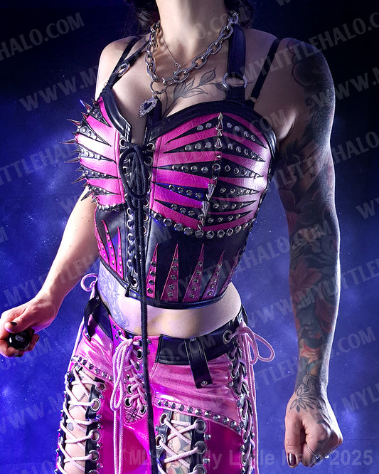 #18 Dark Pink & Silver Spike & Gemstone Bustier