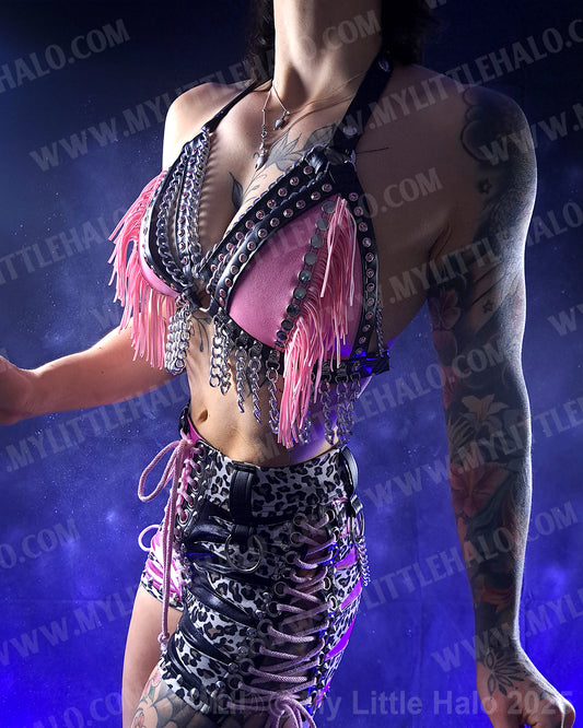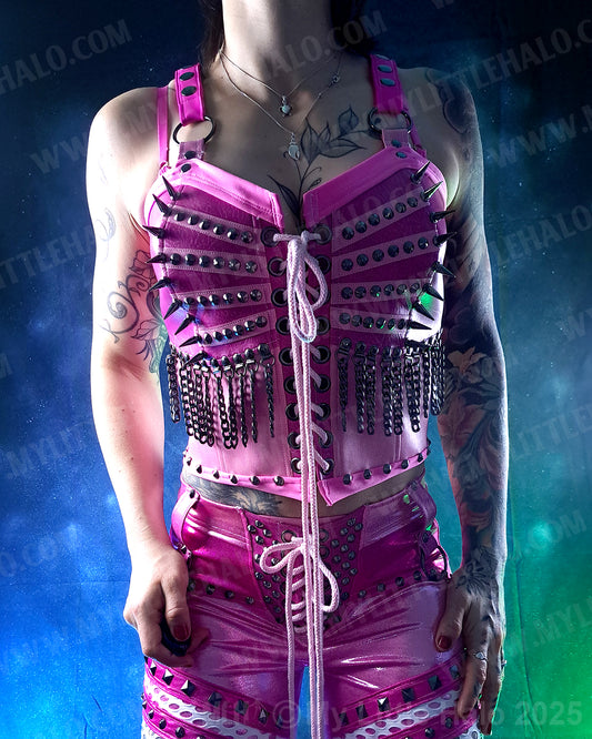 #3 Pink & Gunmetal Spiked Chain Fringe Bustier