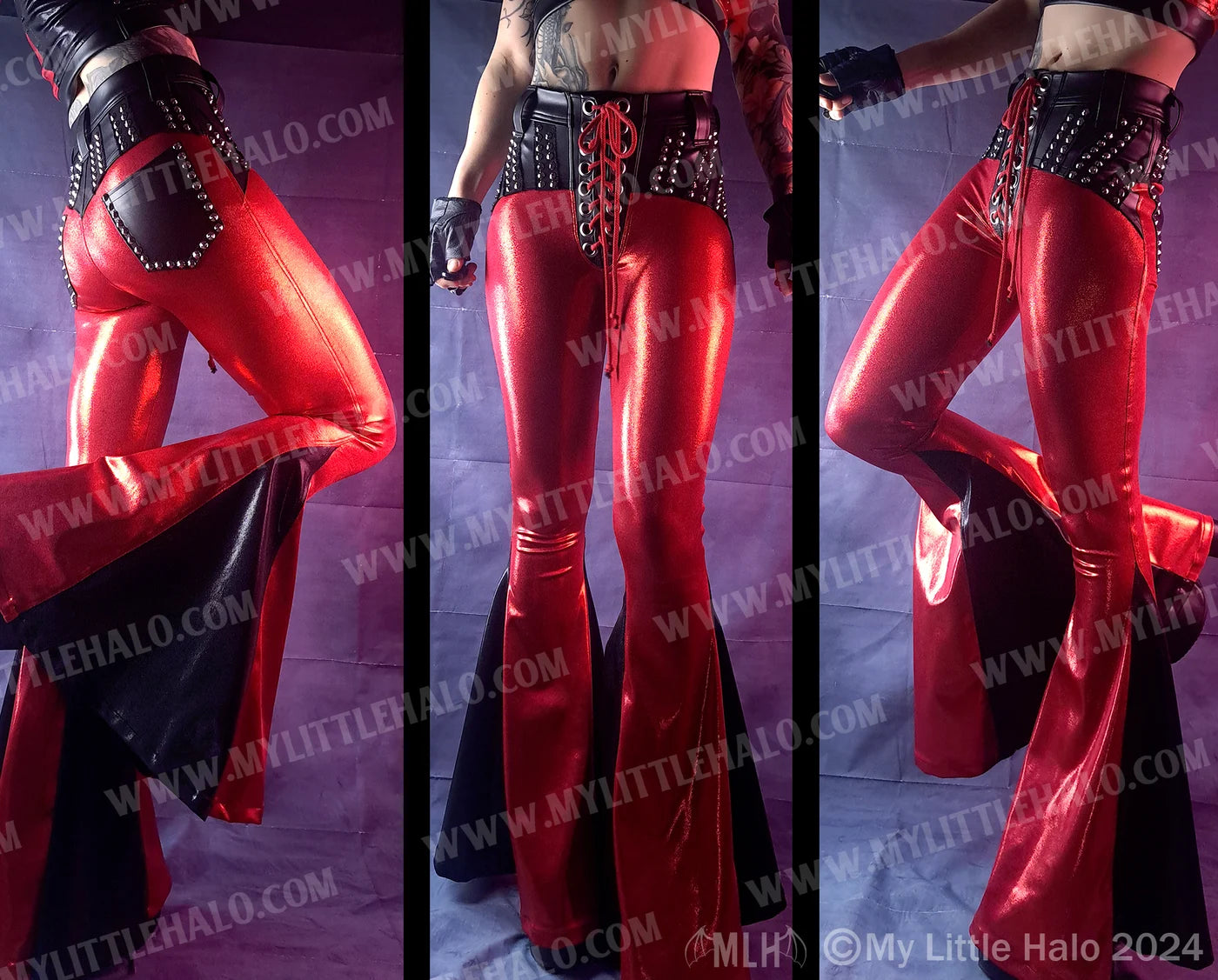 *Red & black metallic spandex & faux leathers