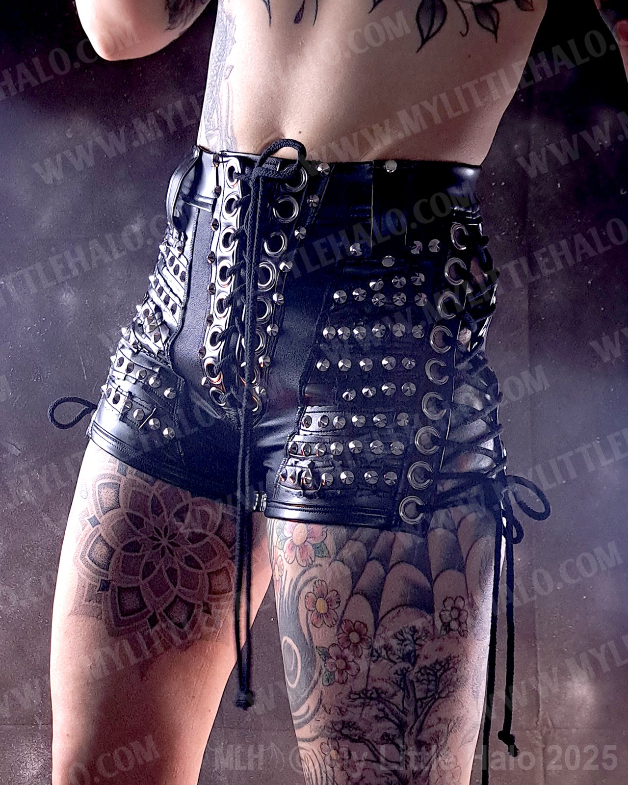 Rock, Metal, Goth Style Lace up Studded Shorts – One of a Kind