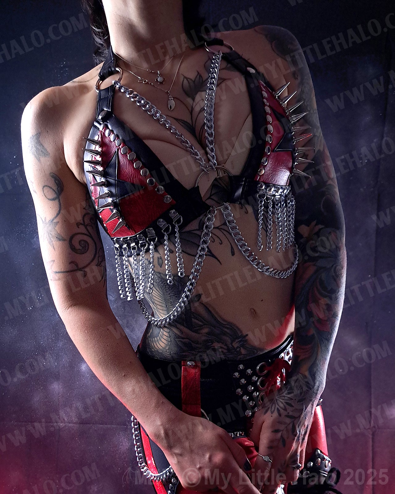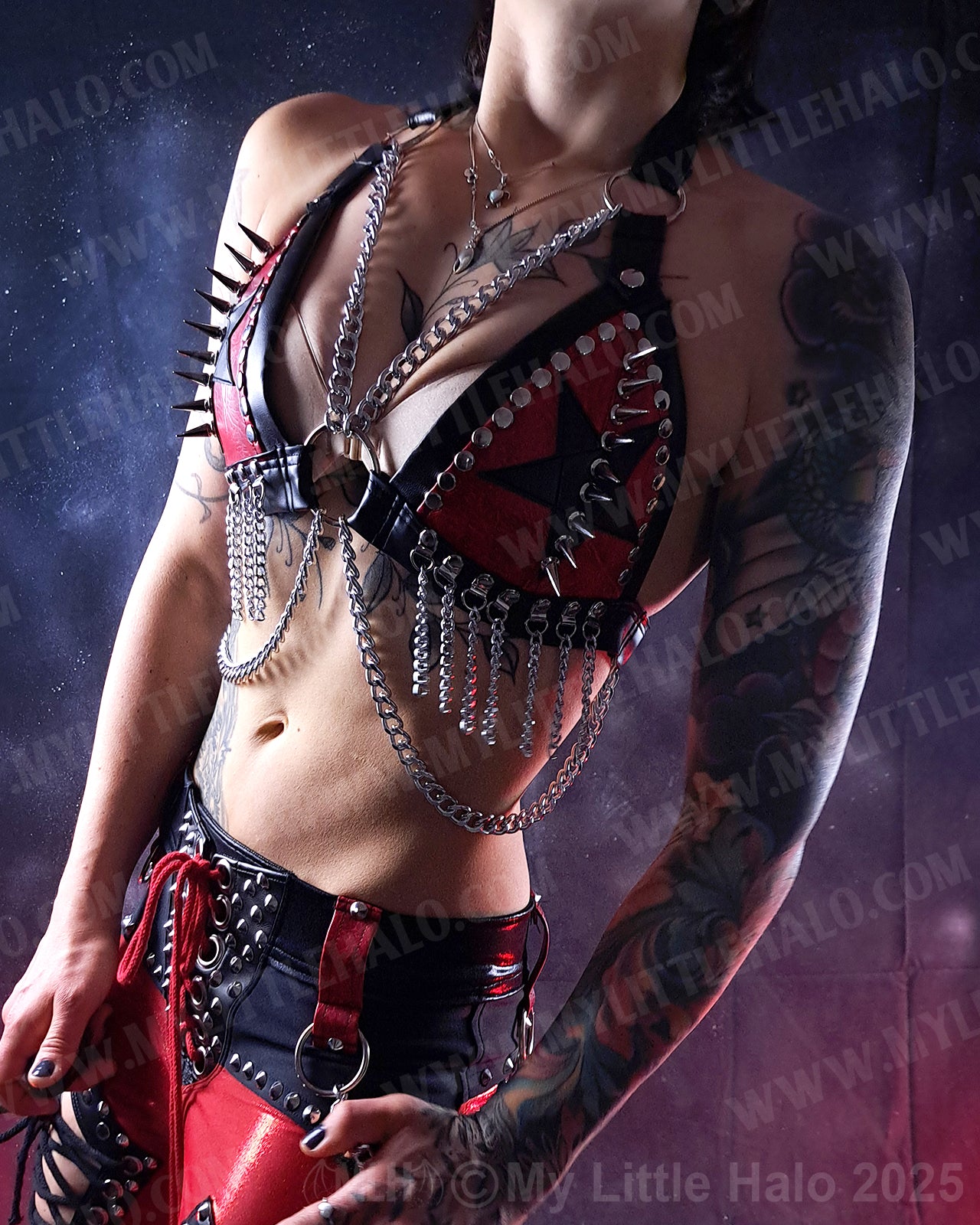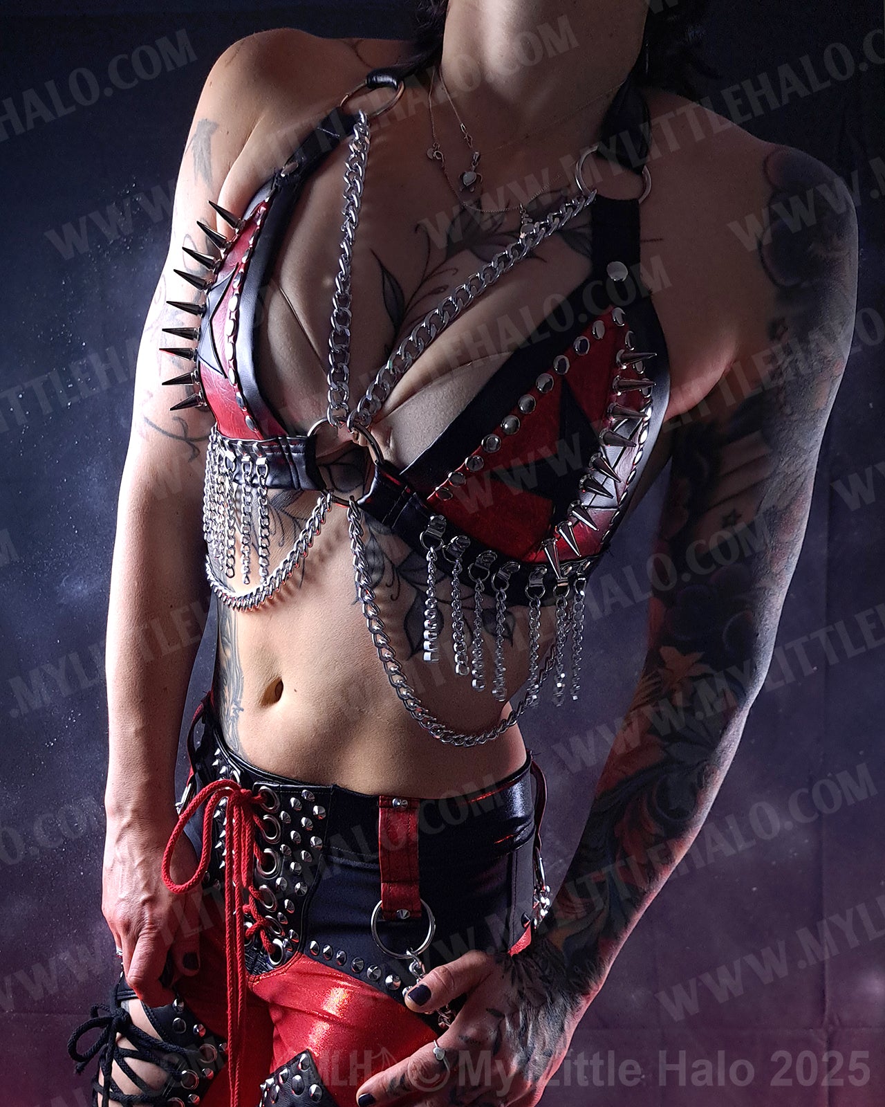 #8 Red & Black Spikes, Stars & Chains Bikini Top