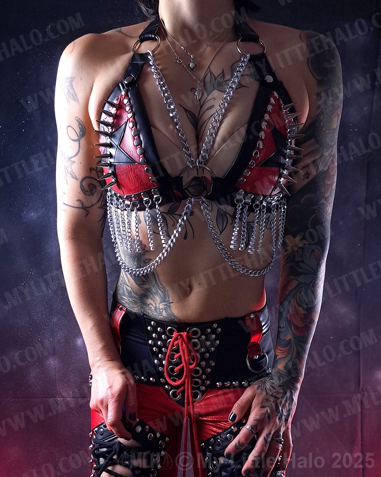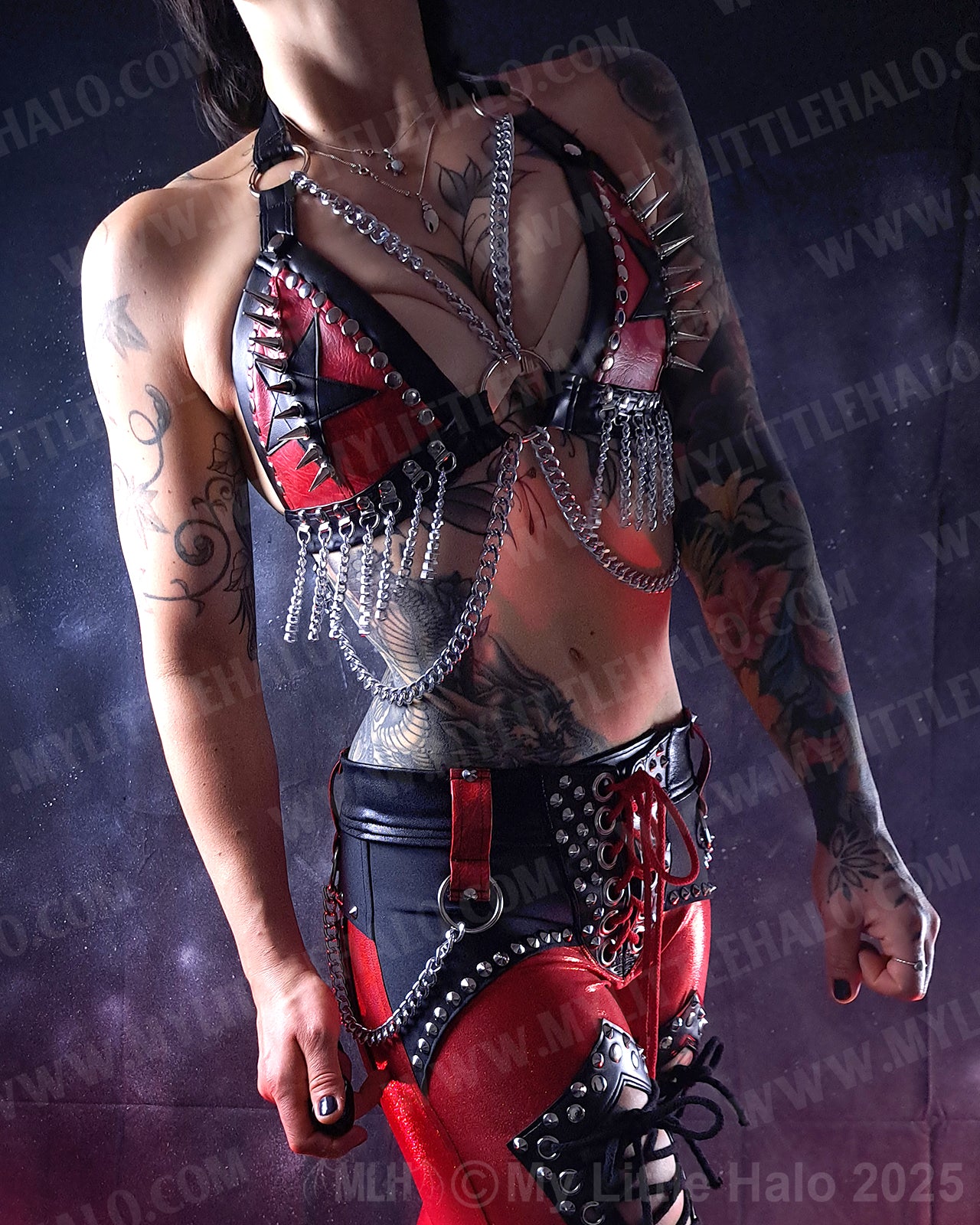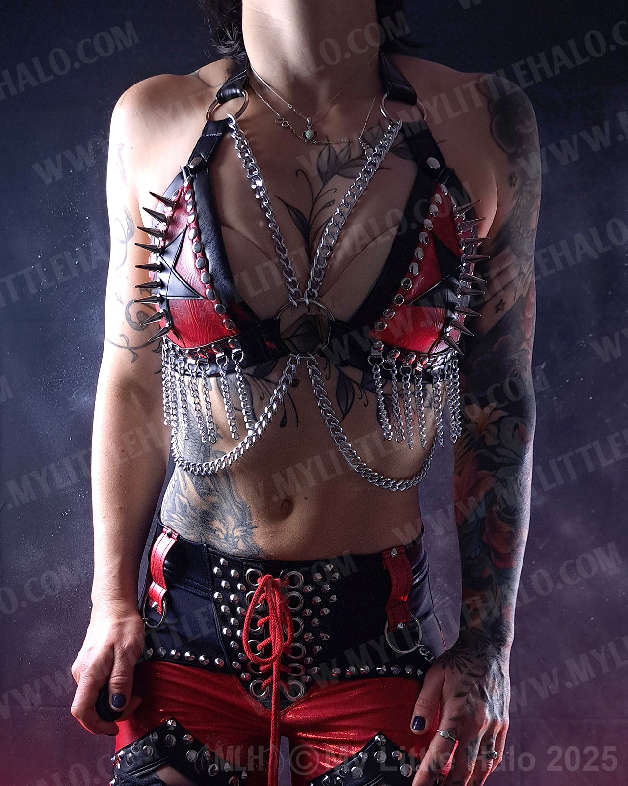 #8 Red & Black Spikes, Stars & Chains Bikini Top