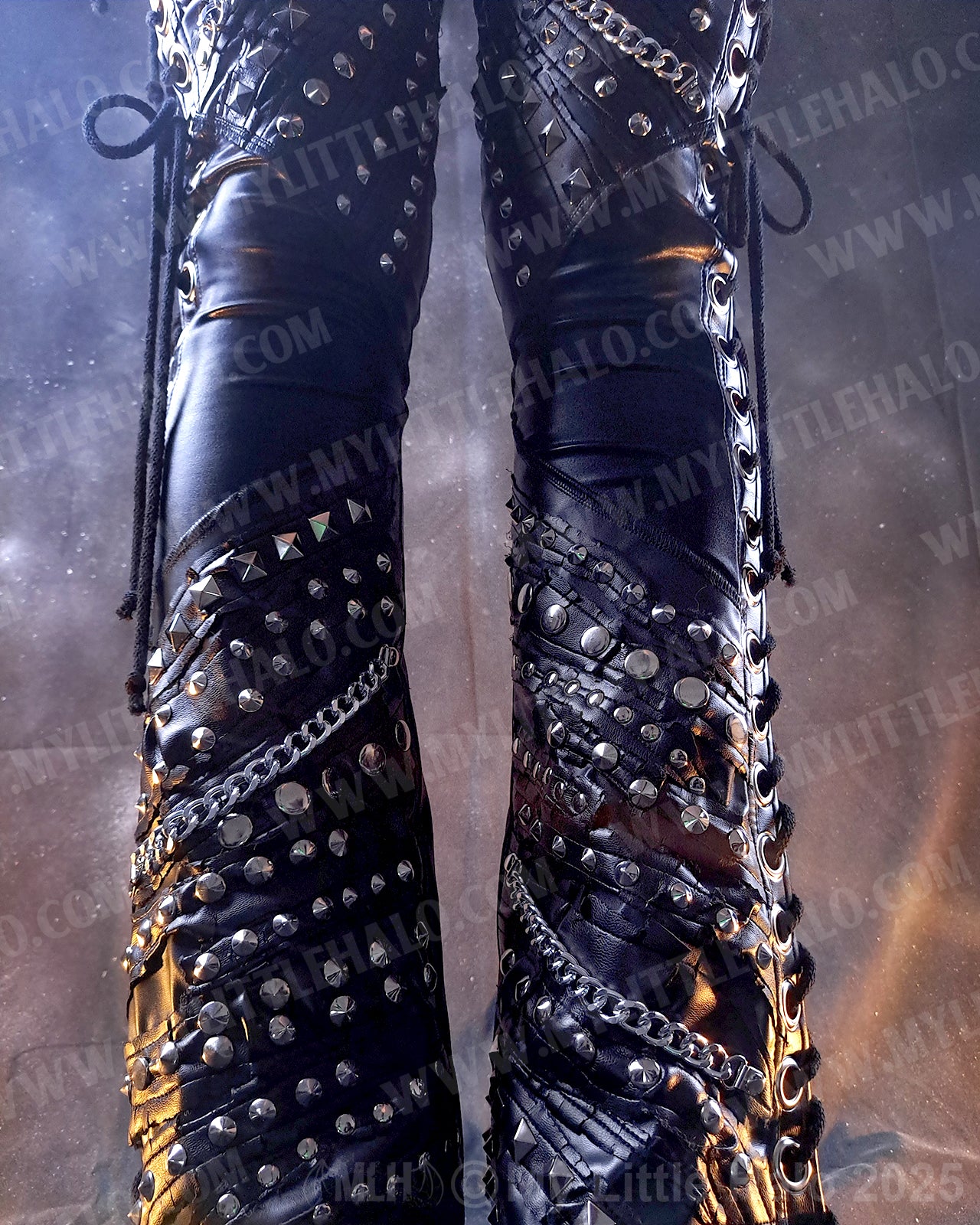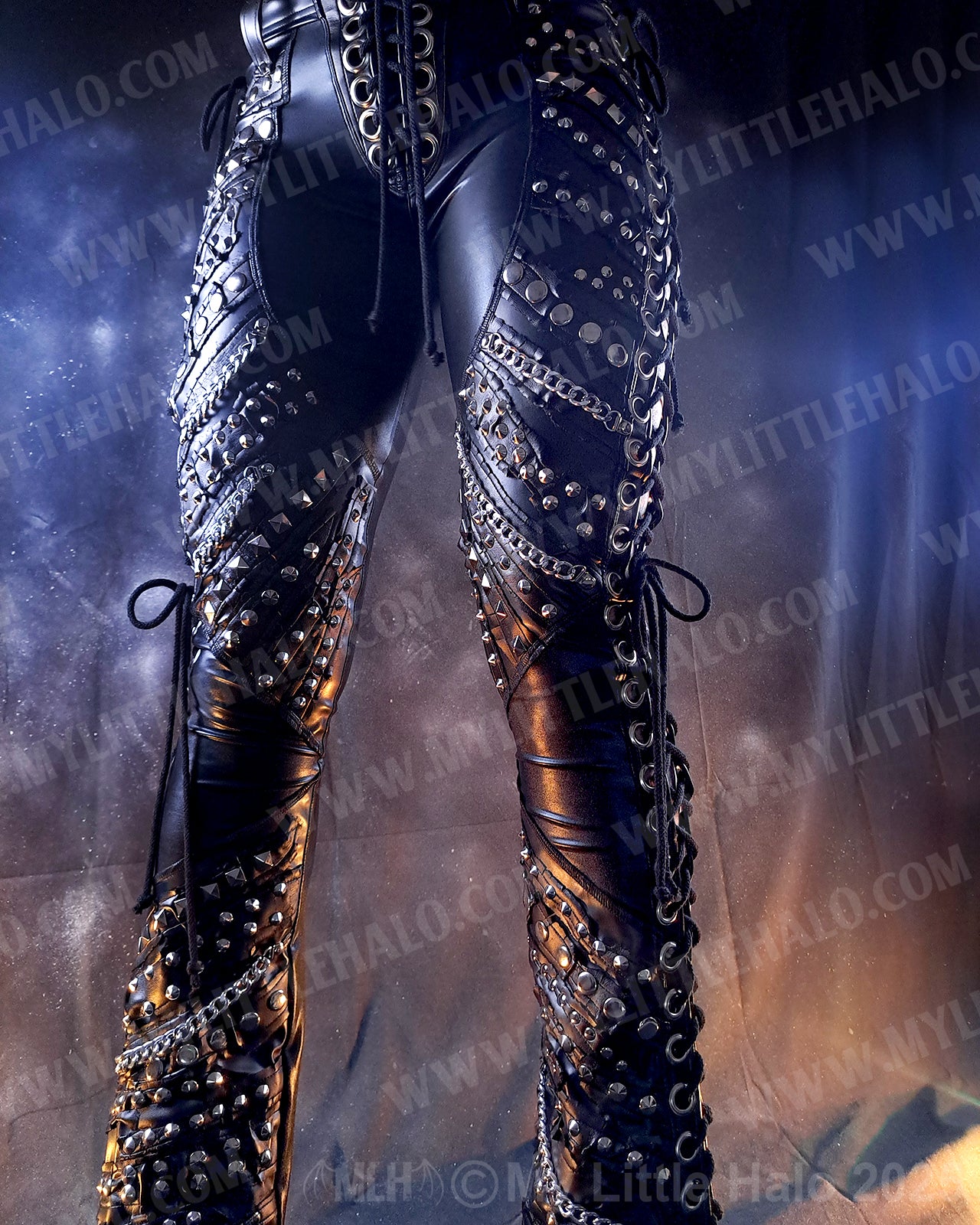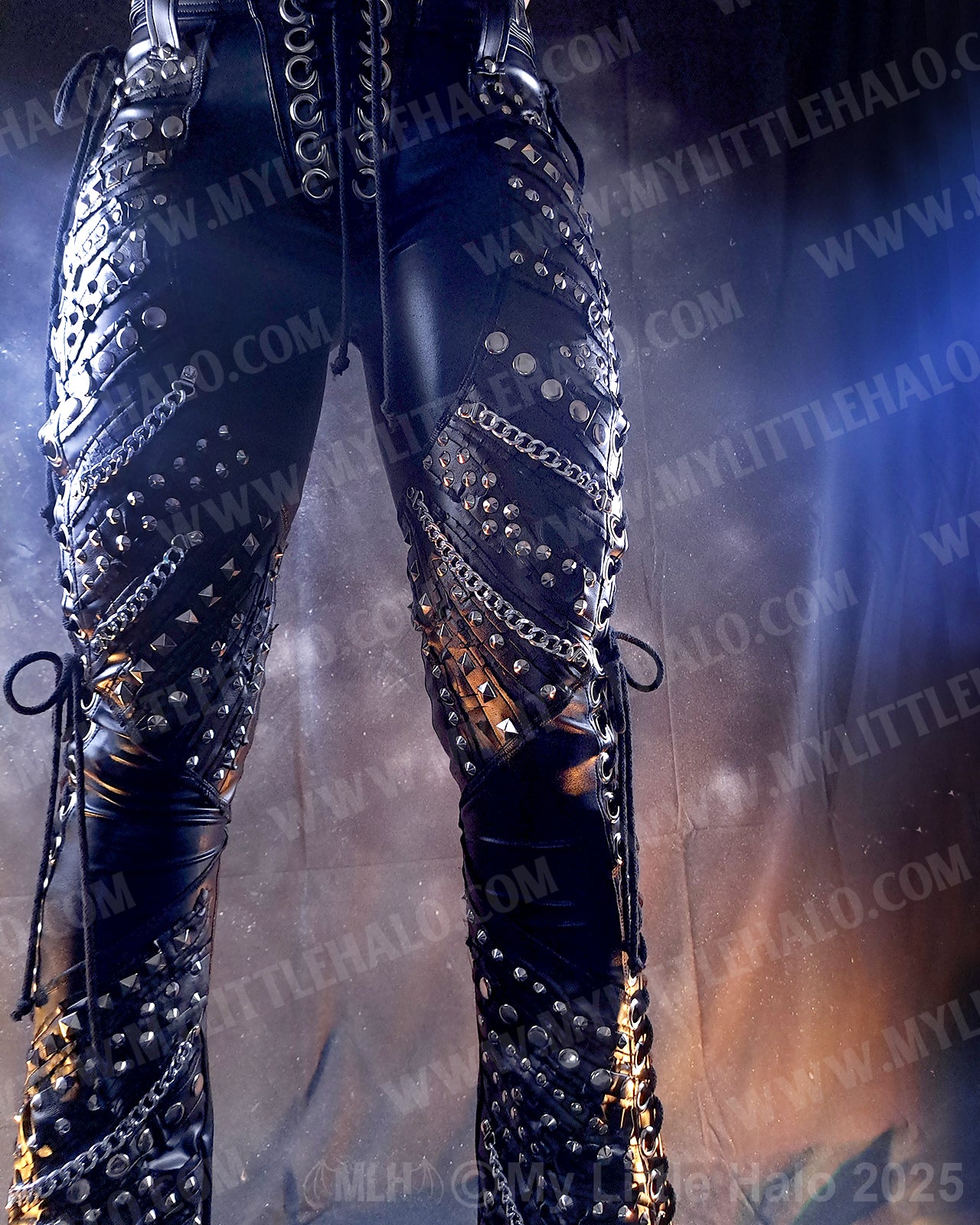 Unique Heavy Metal Lace up Studded Pants – Wet Look, Leather & Silver Hardware