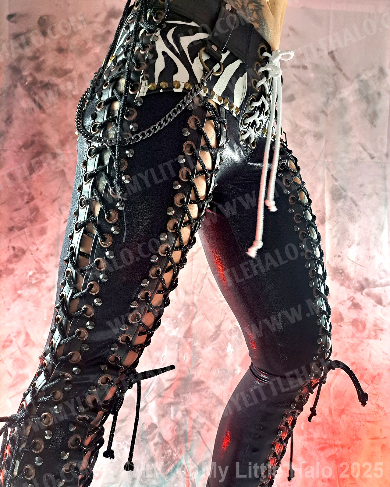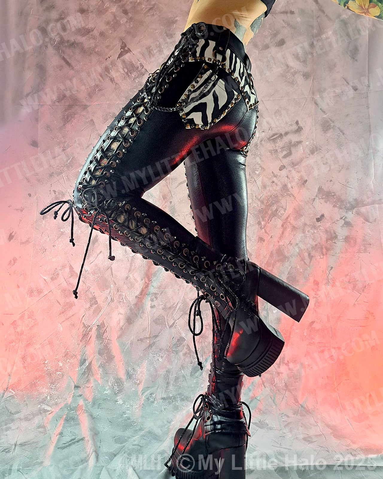 #9 Zebra Print & Black Double Lace up Metal Pants